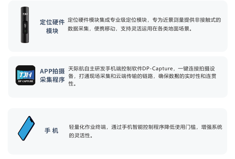 天際航T-Box手持移動(dòng)測量終端是?款軟硬件?度集成、可便捷移動(dòng)式的輕量型產(chǎn)品,采?地?拍照設(shè)備搭載?精度定位模塊,?接觸機(jī)動(dòng)靈活采集地面數(shù)據(jù),結(jié)合天際航后處理軟件,遠(yuǎn)程在線作業(yè)高效作業(yè),全?提升信息采集和計(jì)算的效率和精度。