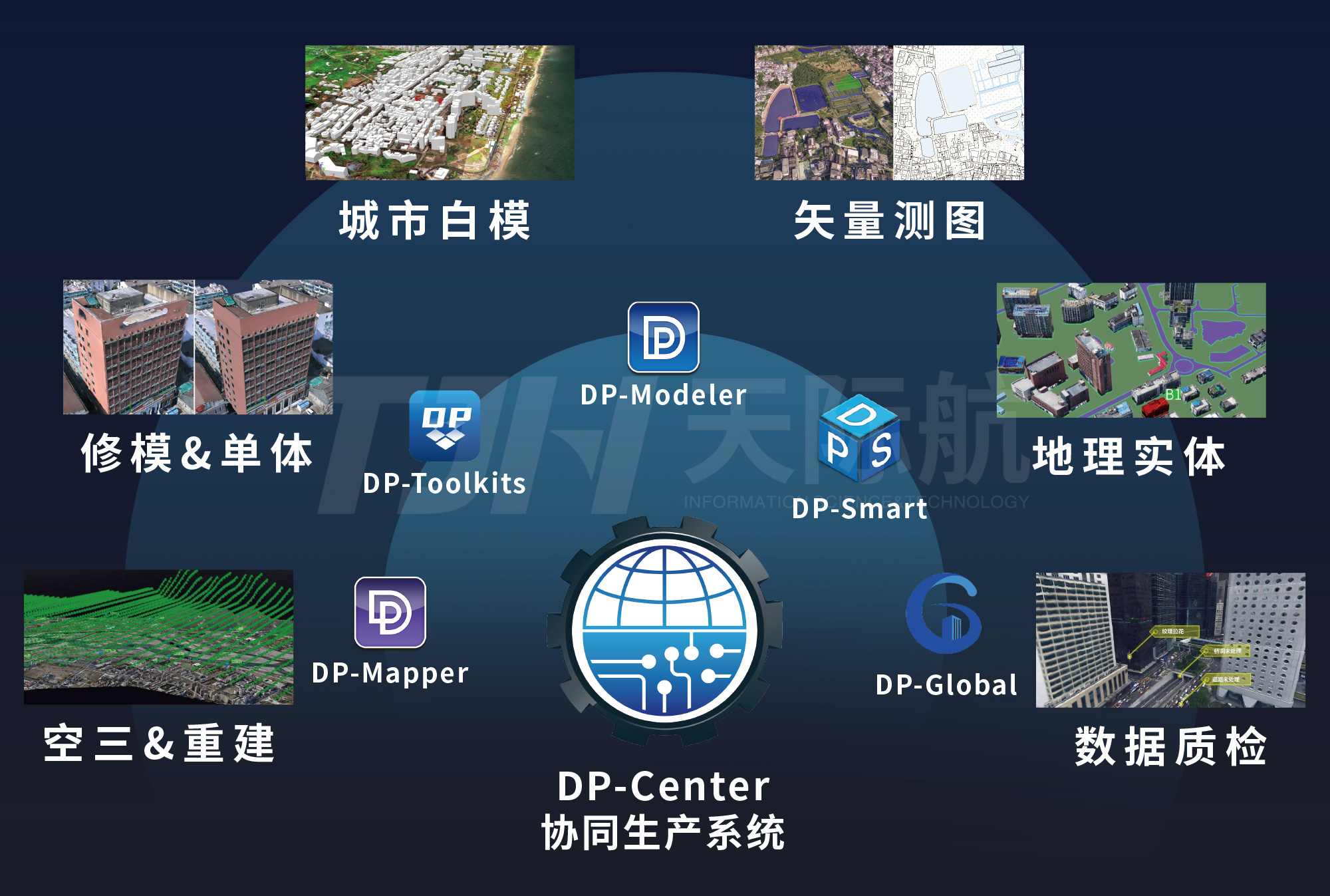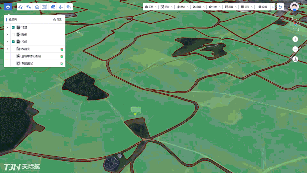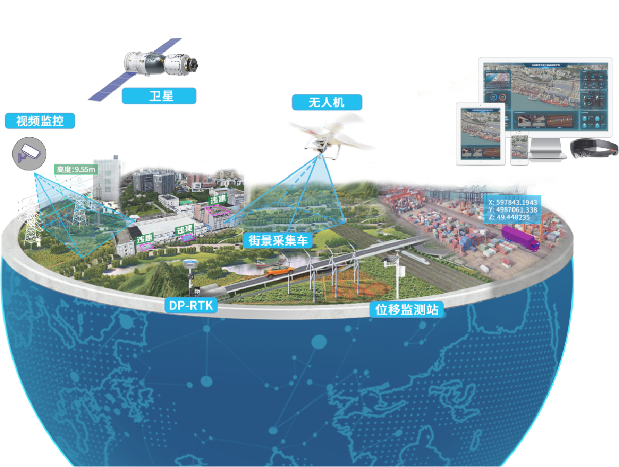 天際航立體監(jiān)測平臺以三維底座為空間基準,通過對其多模態(tài)空間數(shù)據(jù)的幾何配準及語義對齊,從而建立面向地理環(huán)境的空間組網(wǎng)監(jiān)測體系,實現(xiàn)航天衛(wèi)星、低空無人機、監(jiān)控攝像頭等傳感器的跨視角協(xié)同監(jiān)測。系統(tǒng)依托天-空-地多源數(shù)據(jù)定向配準、特征提取、高精度量測與融合可視化等技術,提供影像比對、目標識別、定位跟蹤、調查監(jiān)測等功能,可大幅空間智能感知和監(jiān)測能力。
